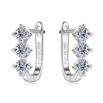 Moissanite Earrings for Women, 0.3 Carat, U-Shaped Geometric Design, Available in Gold and White Colors, Set of 1 Pair.