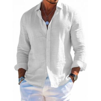 Comfortable men’s long sleeve loose shirt with lapel and buttons. Solid colors, plus sizes up to 6XL. Perfect for casual and leisure wear.